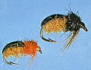 Honey hen hackle fibres tied in sloping back under thorax |