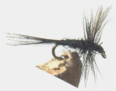 Wings: Black Cock Hackle Points tied upright and divided (Optional)