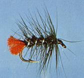 N.B. To make the pattern extra buoyant for fishing on the bob, I usually tie in an extra black cock hackle behind the eye. It may also be of interest to note that the original dressing specified black silk for the body and a black hackle with a touch of green in it.
