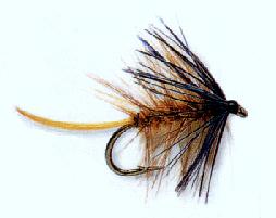 Hackle: Heavily Palmered Olive Cock with Blue Jay at Head.