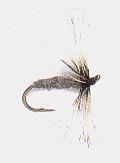 - Tie in and make two or three turns of badger cock hackle, then trim any waste.